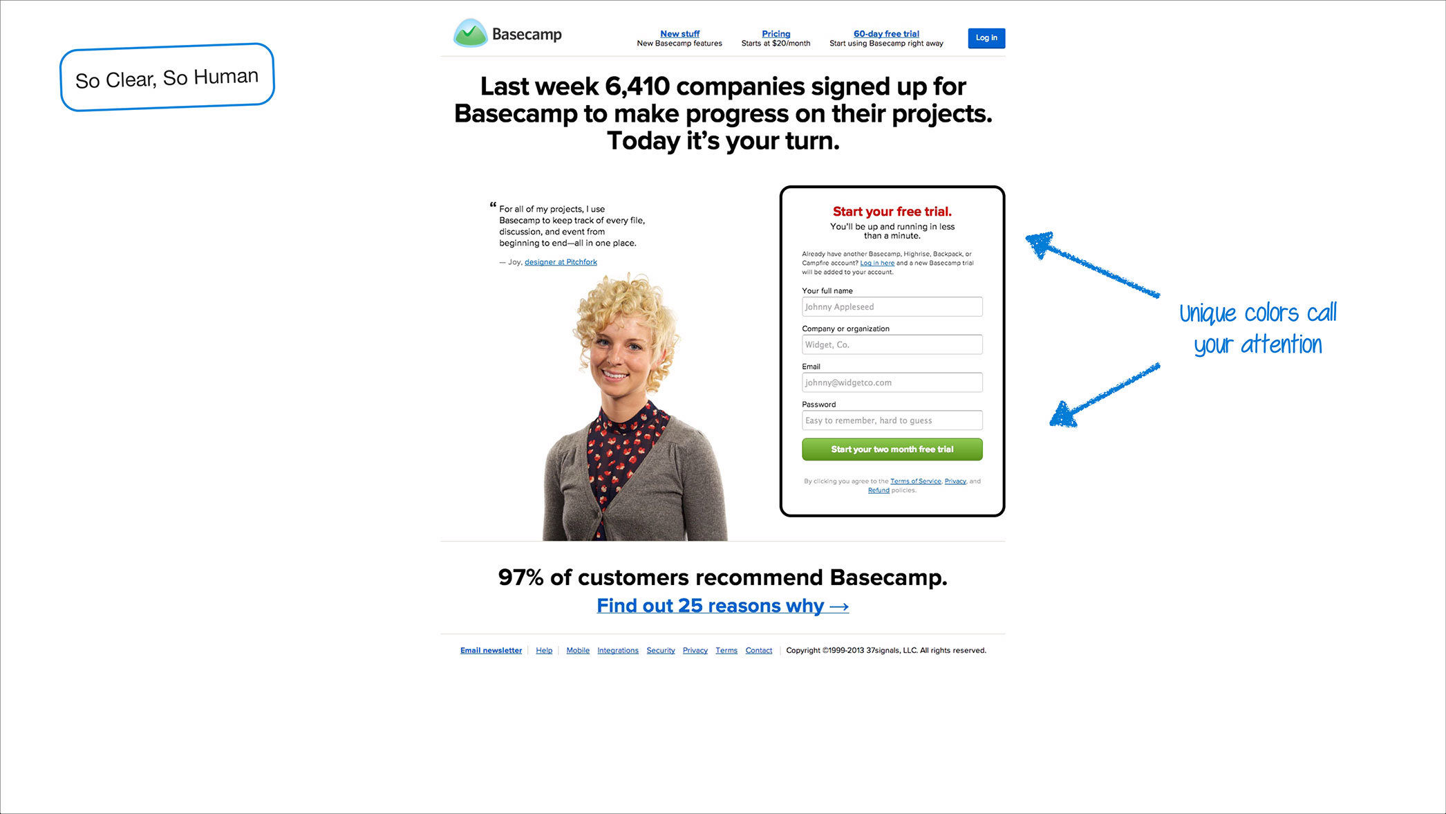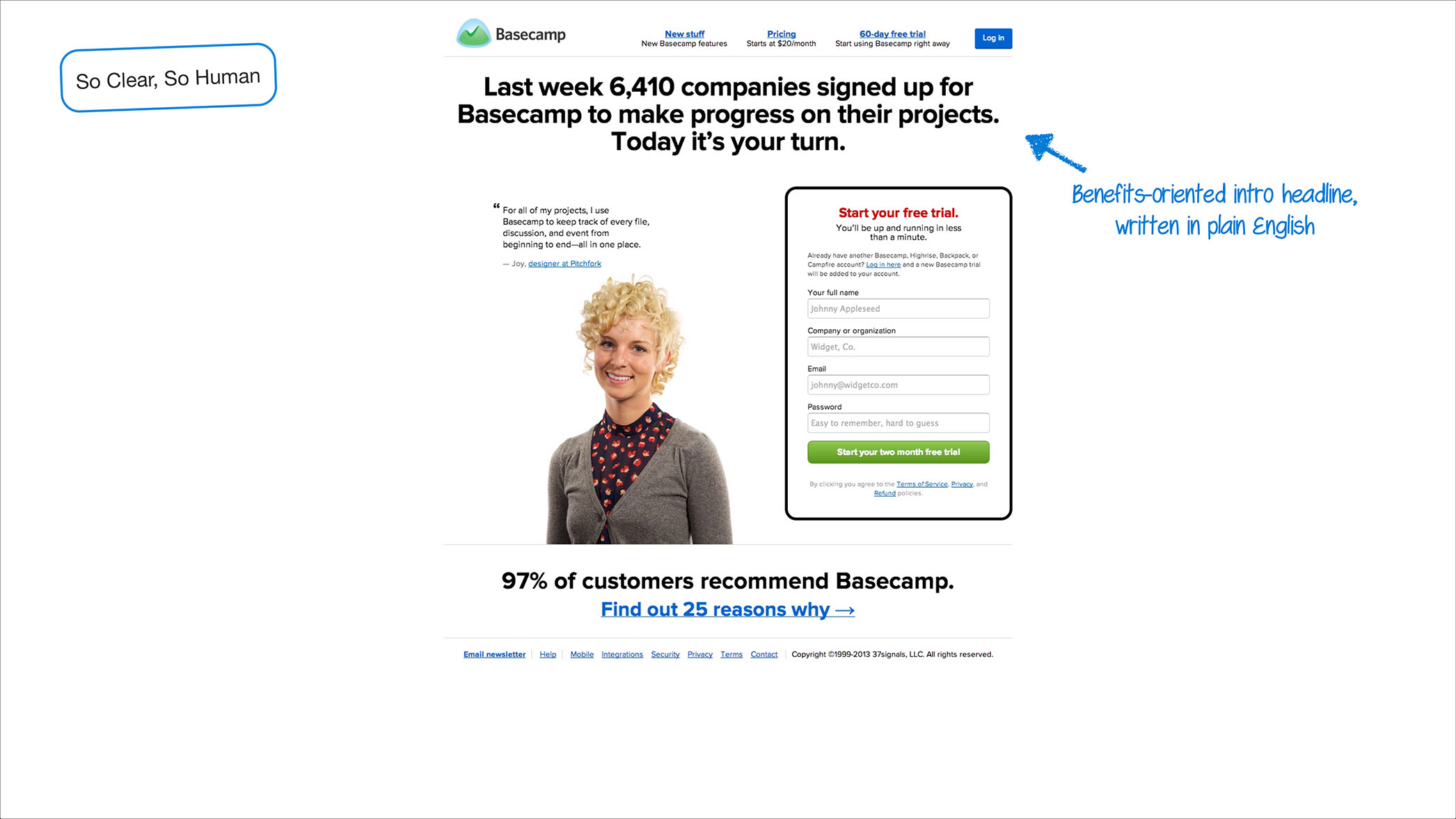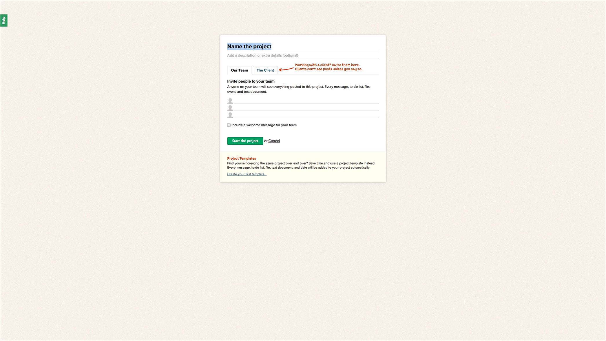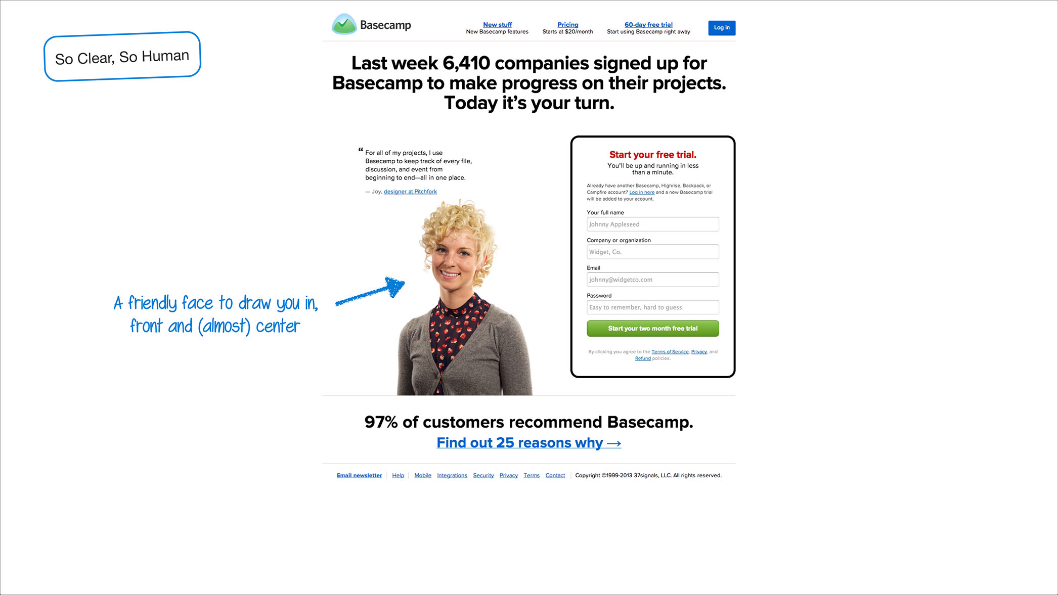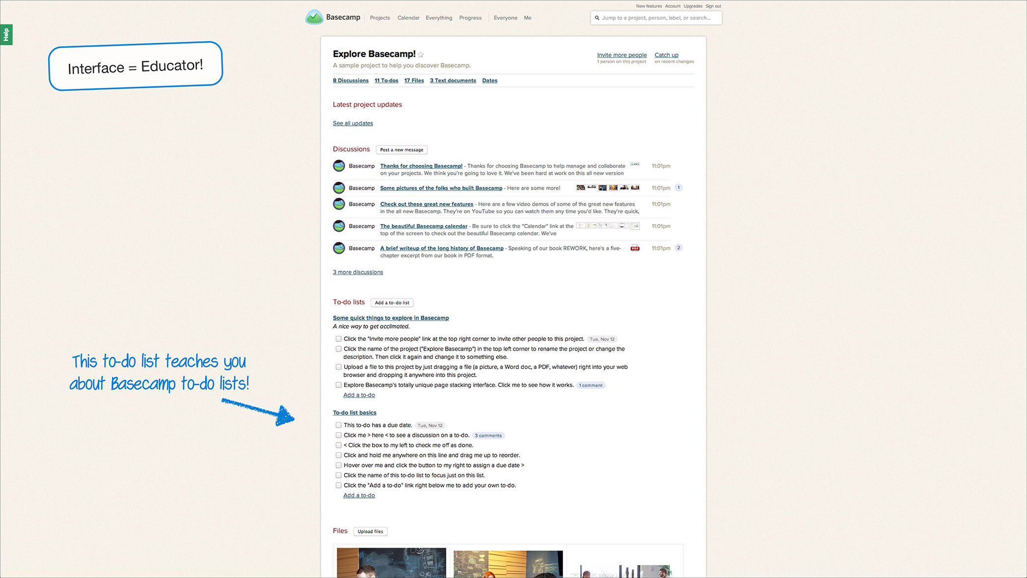 37signals is renown for producing clean, no-nonsense products, and their onboarding experience is exactly that. They also have a very cool tactic for getting new users acquainted with the interface!