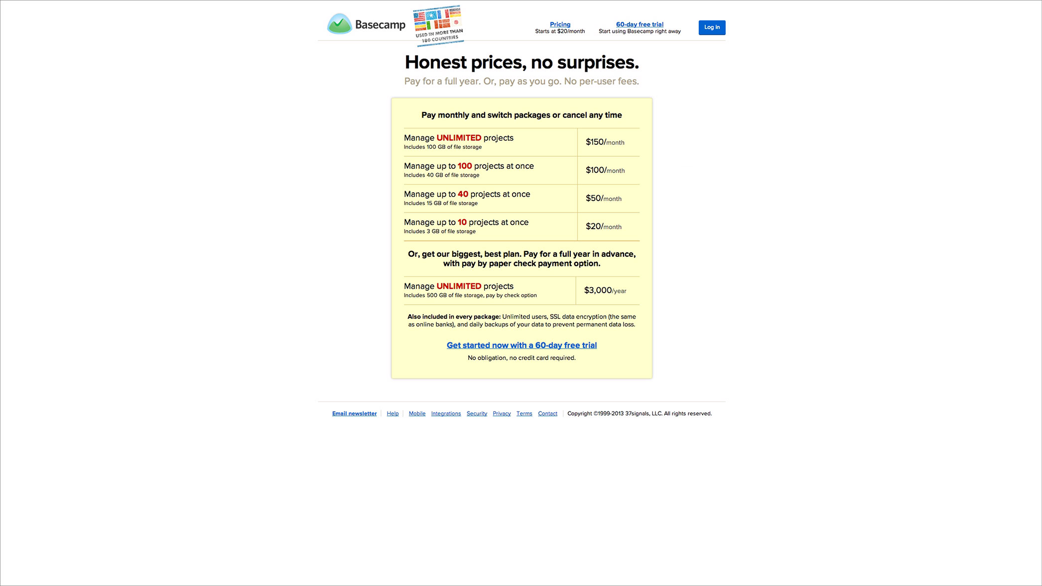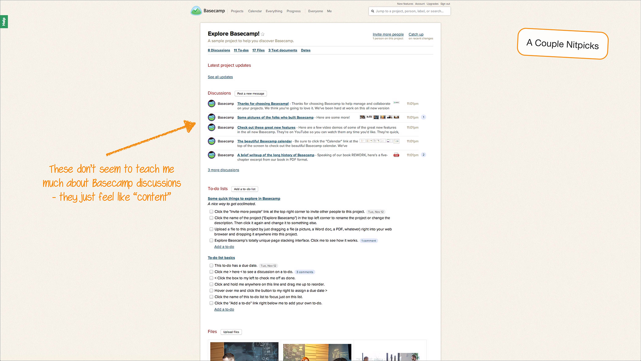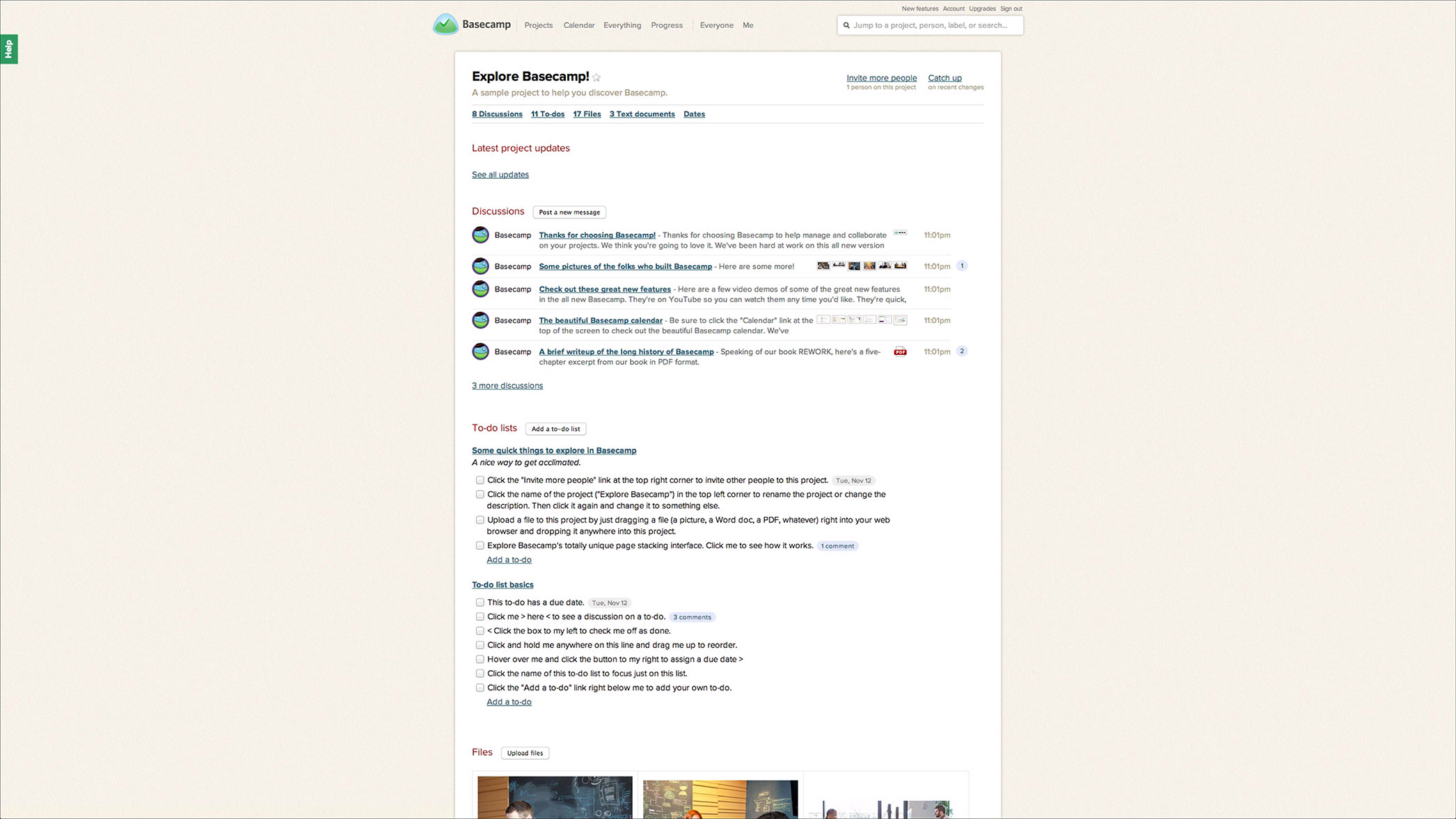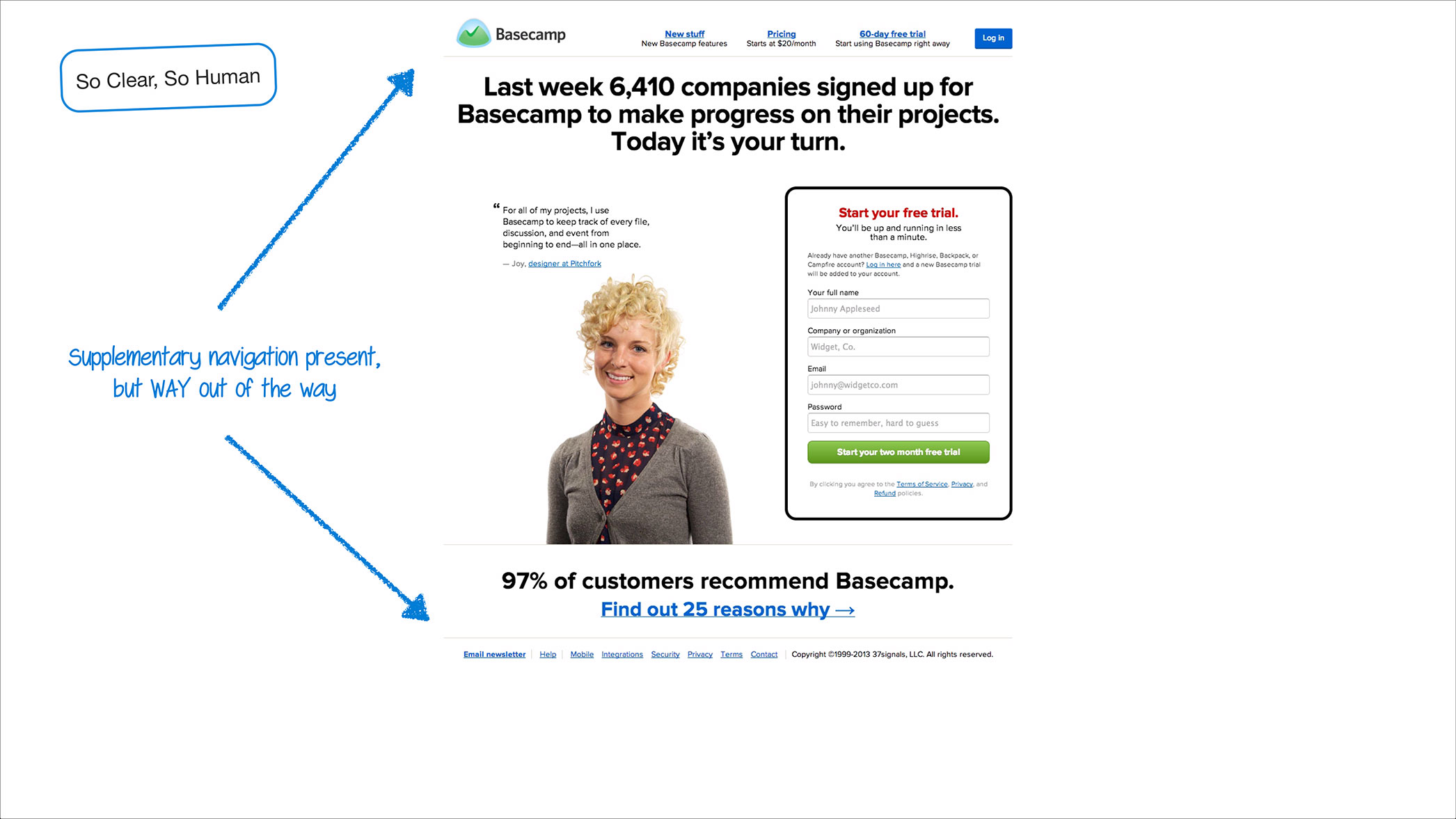 37signals is renown for producing clean, no-nonsense products, and their onboarding experience is exactly that. They also have a very cool tactic for getting new users acquainted with the interface!