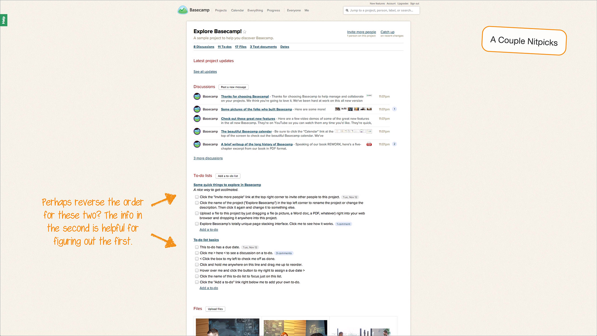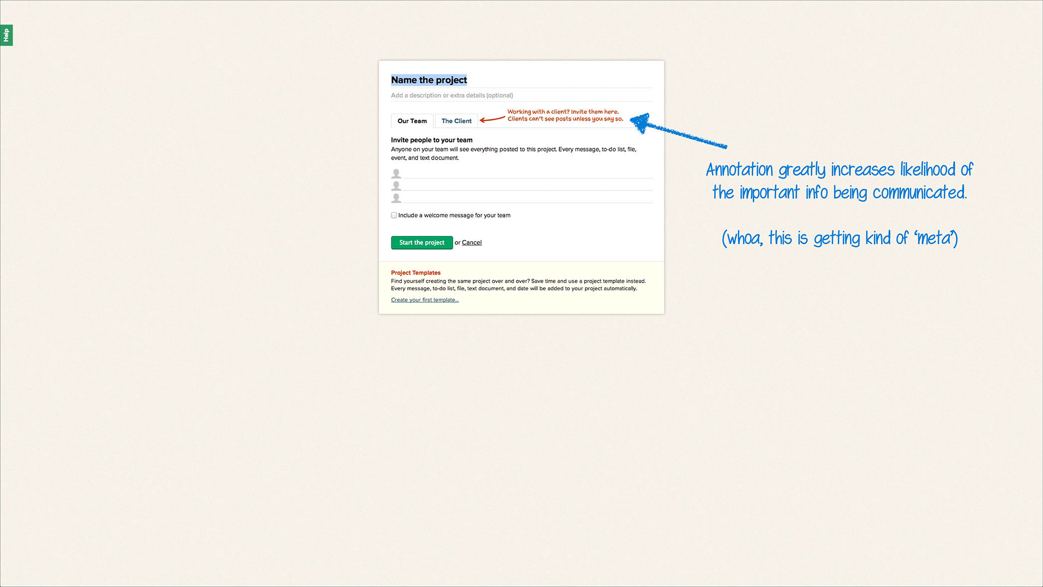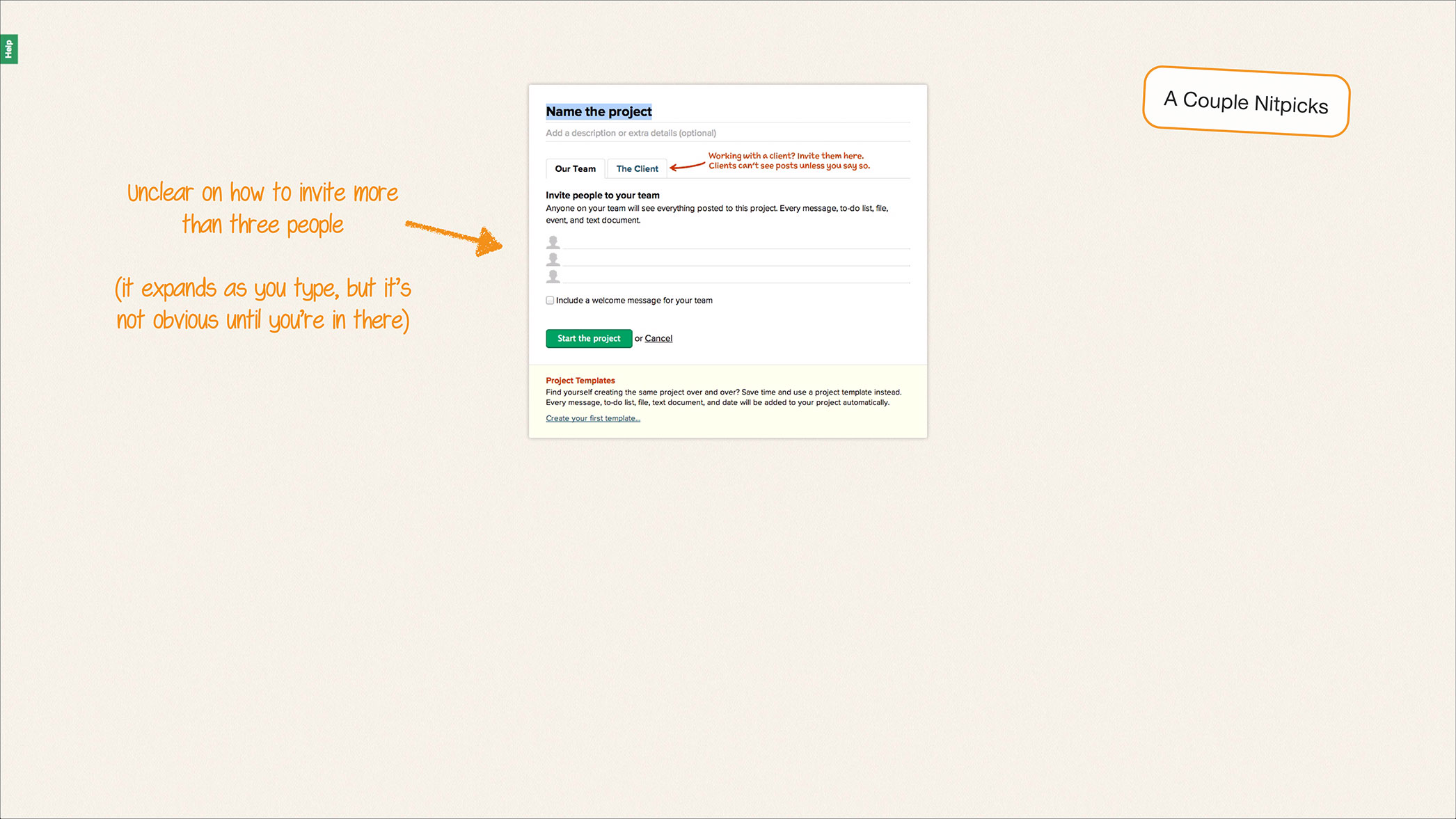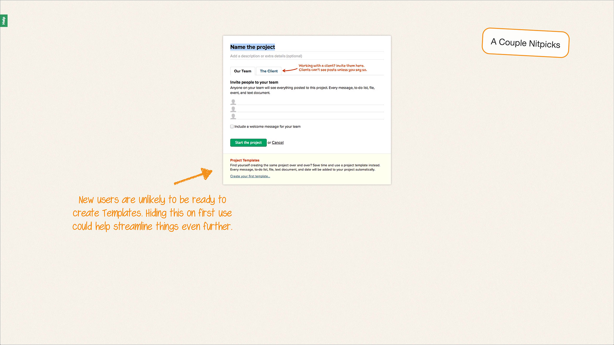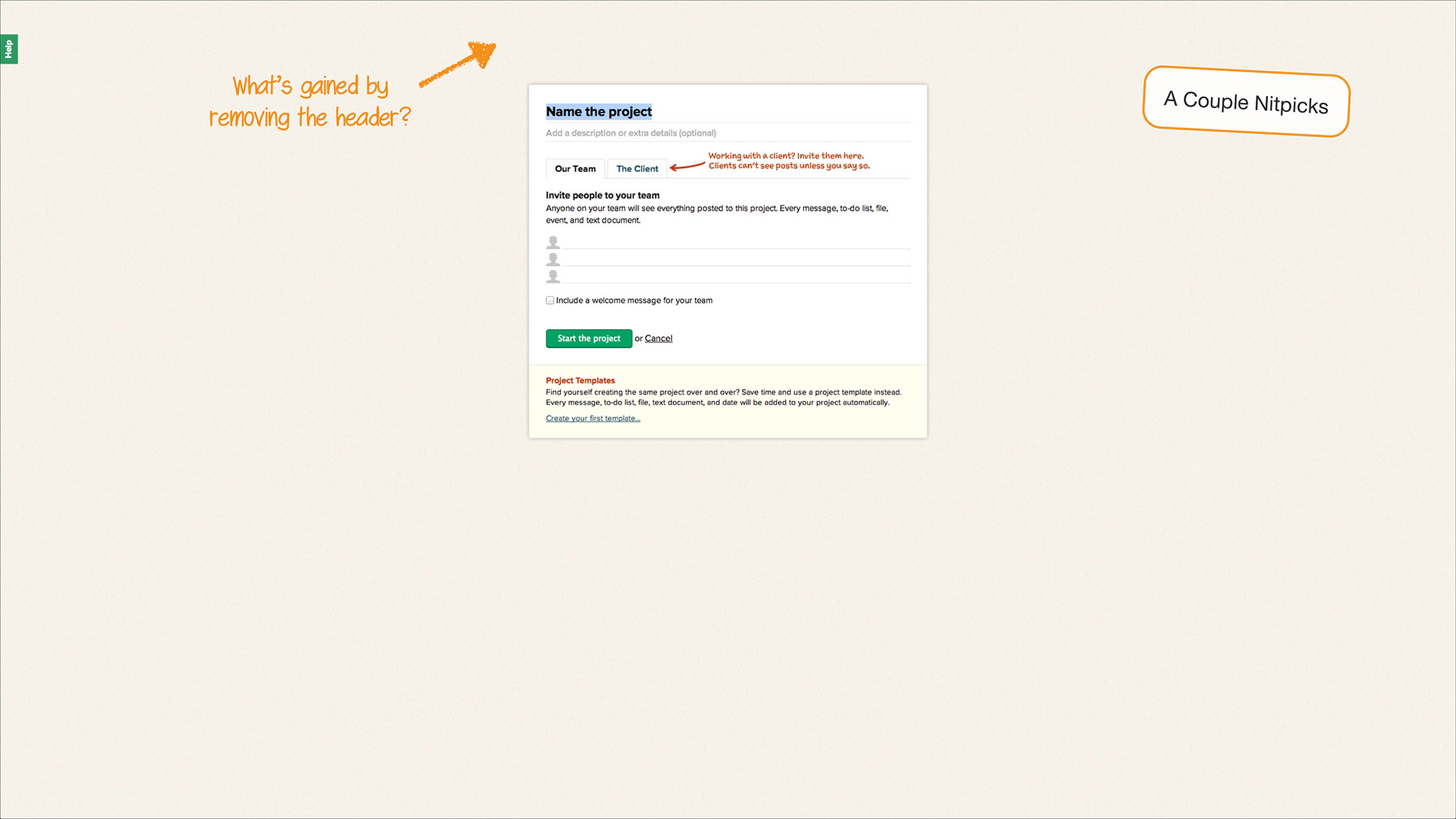 37signals is renown for producing clean, no-nonsense products, and their onboarding experience is exactly that. They also have a very cool tactic for getting new users acquainted with the interface!